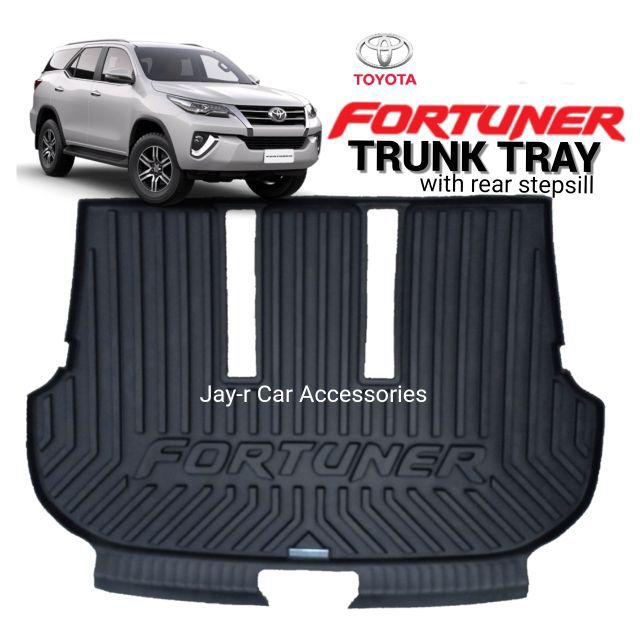 Rubber cargo mat the toyota genuine cargo mat is tailored to fit your fortuner and provides additional protection against liquid spills or debris damaging your vehicle s carpet.